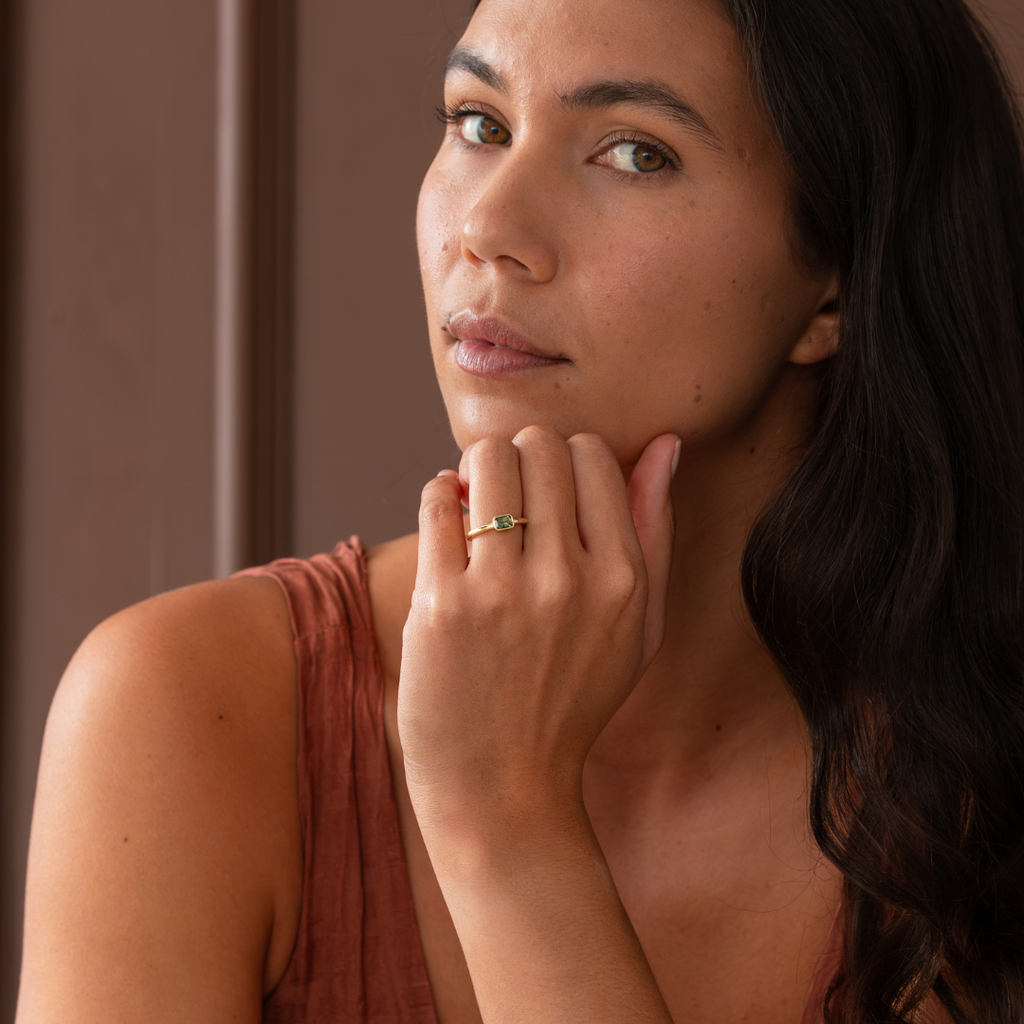 The East West Collection is classic, with a playful twist. Each ring features a unique stone, horizontally set, ensuring no two rings are every the same.