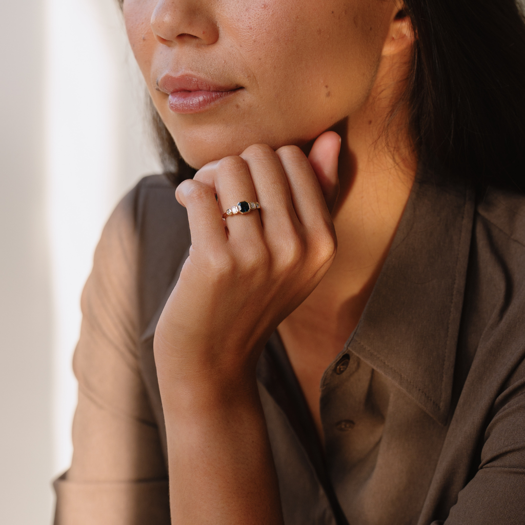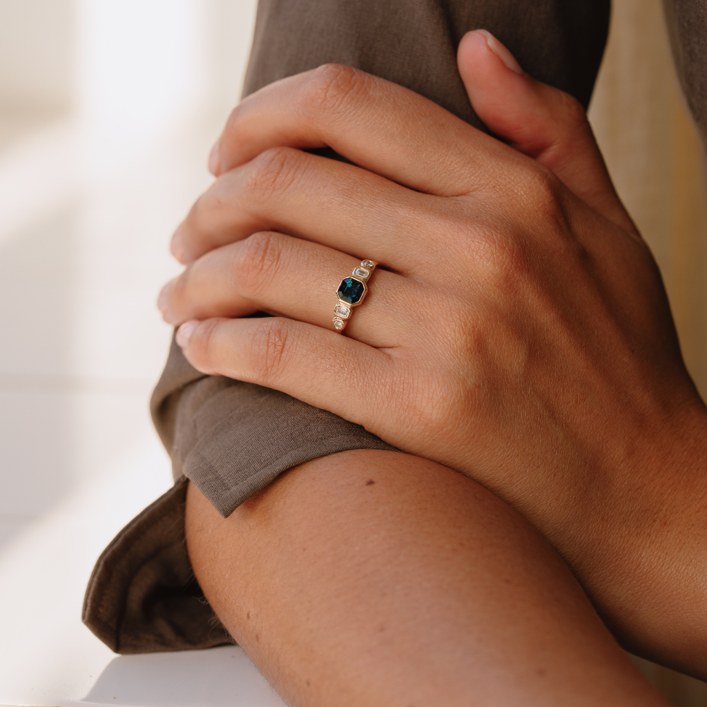 Posy 0.86ct Asscher-cut Teal Sapphire