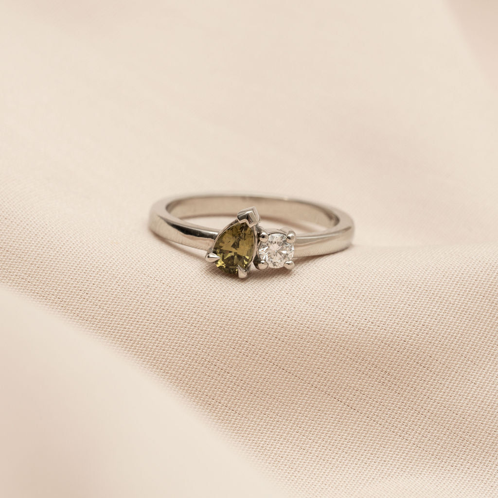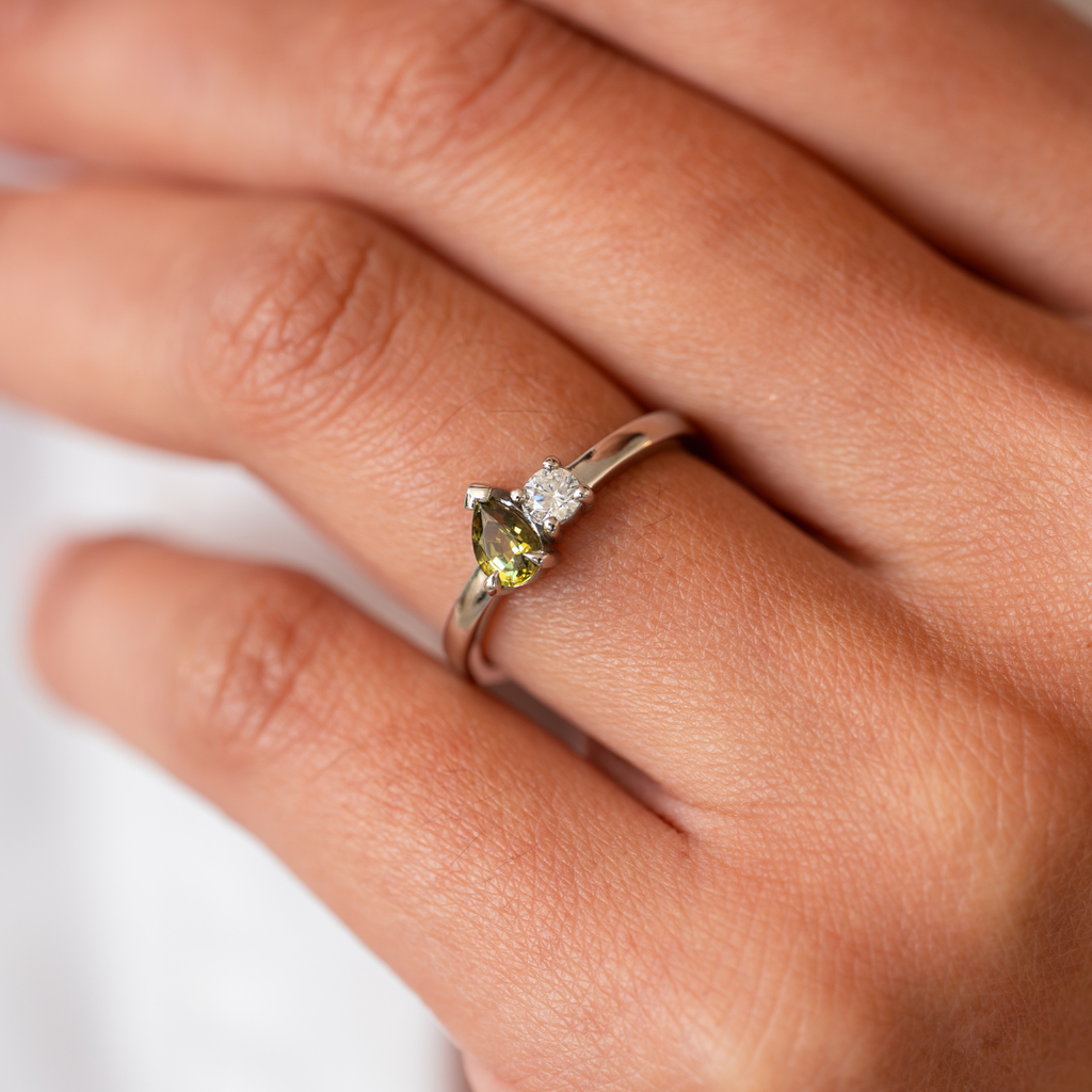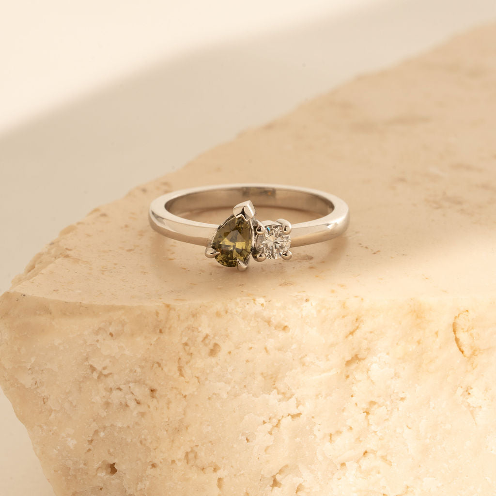 The Toi et Moi is now made to order. Our take on a classic - a pear shaped coloured sapphire with a 3.5mm round white diamond. We have a range of pear shaped sapphires for you to choose from.
